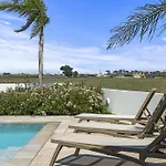 Die 3-Zimmer- Serenity Waves Villa 22 verfügt über eine Terrasse mit Aussicht aufs Meer sowie einen Außenpool.